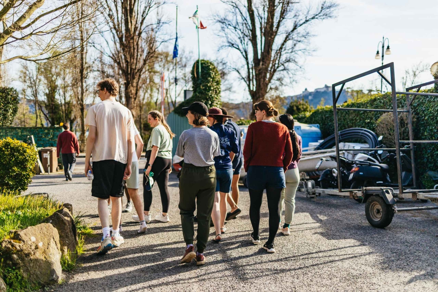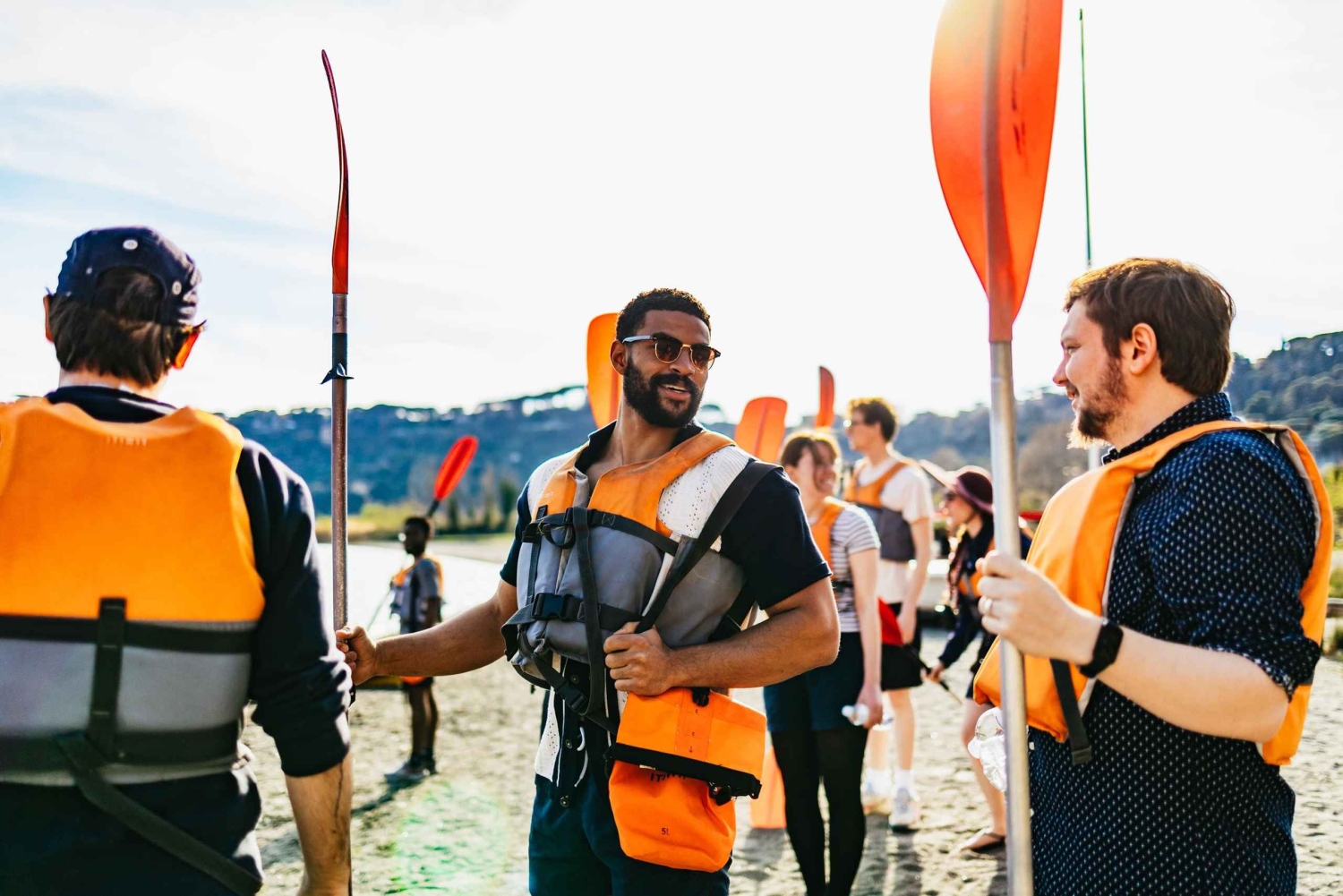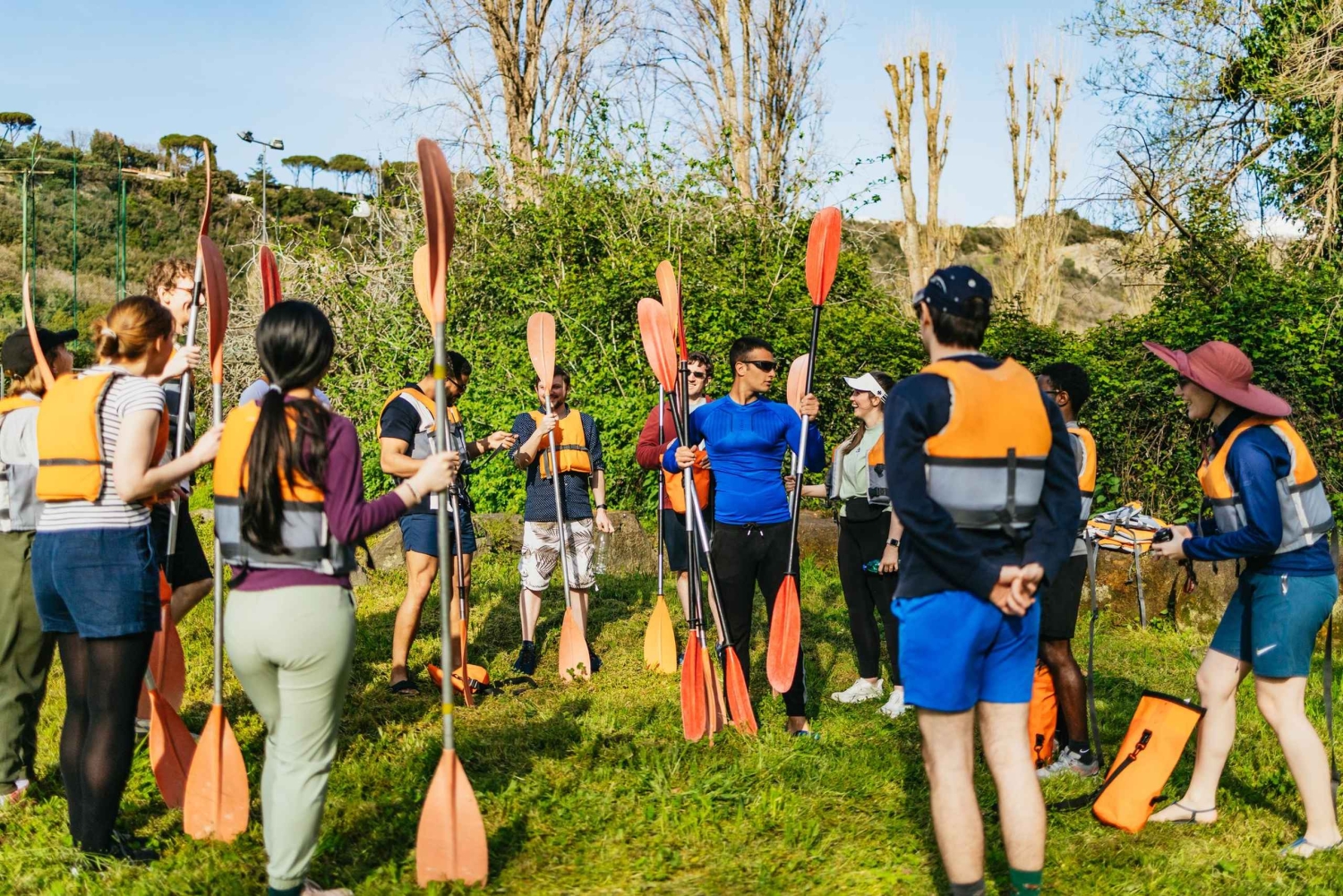 Kajakk og padleåre Redningsvest Vanntett bag Vann på flaske Et stykke pizza Transport fra RomaImportant Information