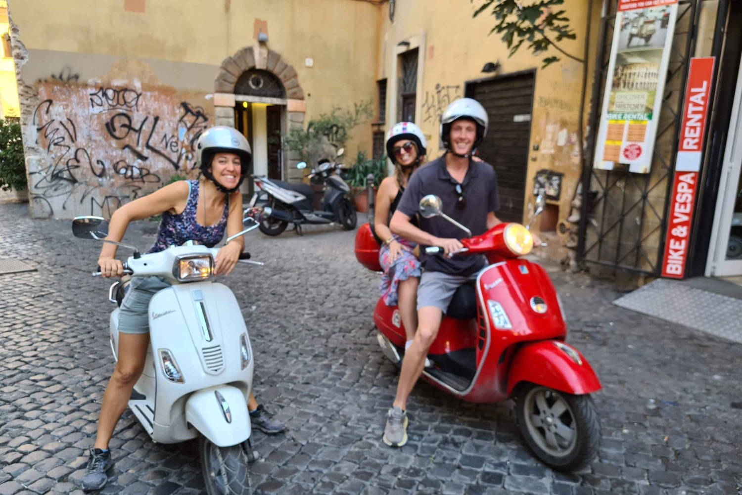 Stig om bord i en Vespa og opplev Romas gater med stil på denne guidede turen. Oppdag fortryllende områder og noen av byens hotteste attraksjoner i et avslappet tempo, og kjør til noen av de mest pittoreske stedene som bare kan nås med scooter. Møt guiden din på et sentralt sted i Roma. Få utdelt hjelm og en Vespa for hver 2 deltakere. Kjør gjennom de livlige gatene med mulighet til å tilpasse reiseruten etter egne interesser. Ta en tur som lar deg unngå severdighetene du allerede har sett, slik at du bare ser de severdighetene som interesserer deg. Hør interessant informasjon om stedene du besøker, og ta en rask kaffepause underveis for å bli en ekte romer.Includes