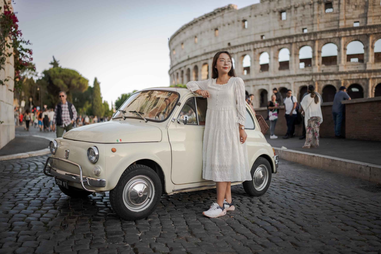 Usługa profesjonalnej sesji zdjęciowej w Rzymie z bezpłatnym transportem samochodem Fiat 500