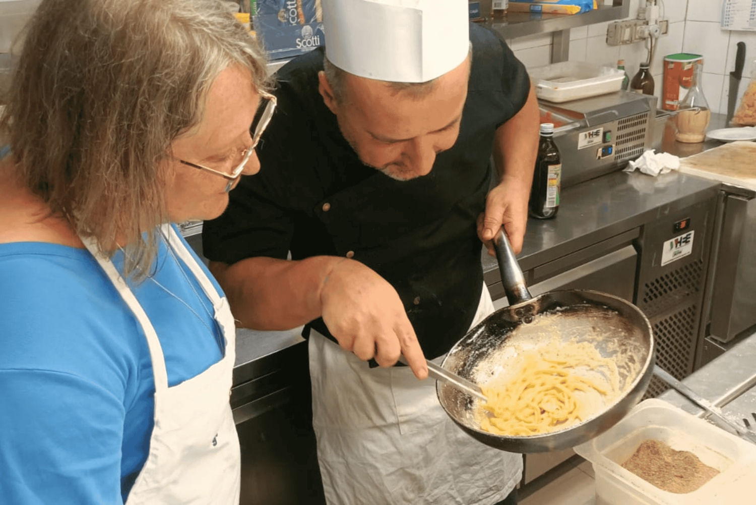 Faz a tua autêntica aula de culinária de massa ou gnocchi ao estilo romano no bairro judeu de Roma, visto no espetáculo de Stanley Tucci. Faz uma pausa na visita à cidade, conhecendo pessoas locais e aprendendo a fazer um menu típico romano a partir do zero. Encontra o teu anfitrião no coração do Gueto Judeu. Desfruta do estilo de vida alegre e descontraído, pelo qual o Gueto é famoso. Dirige-te ao restaurante e encontra o Chef pronto para te revelar segredos e receitas. Esta é uma aula prática, mas se quiseres ser apenas um espetador, podes relaxar, observando o chef a trabalhar, com um copo de vinho. Vais aprender a fazer massa caseira a partir do zero, a limpar e a preparar legumes da época para fritar e a provar a sobremesa que todas as avós romanas costumavam cozinhar para as crianças locais. O menu da época é a chave para uma boa aula de culinária. Aprende a história e a lenda do bairro judeu e do seu estilo gastronómico único. Põe as mãos na massa. Começa a tua aula de culinária aprendendo a fazer massa fresca a partir do zero. Usando o estilo das nossas avós, poderás voltar a fazê-la quando voltares para casa. A comida sazonal é um must em Roma, na aula de inverno, terás a oportunidade de aprender a descascar alcachofras para serem cozinhadas ao estilo judaico, um dos pontos altos da cozinha romana. Na aula de verão, aprenderás a preparar flores de abobrinha ou qualquer outro vegetal fresco para fazer o original 'fritto romano'. No final, prova a fantástica torta di ricotta e visciola, o famoso cheesecake de ricotta feito com ingredientes simples e deliciosos. Reserva a tua aula de cozinha de massas se procuras uma experiência autêntica e louca no bairro judeu. A experiência é adequada para todos, crianças, pessoas veganas e vegetarianos são bem-vindos. O estilo é autêntico e descontraído. Não esperes uma aula erudita, mas um tempo agradável com a população local, aprendendo a cozinhar os pratos da tradição. A massa feita na aula não é sem glúten, mas se podes tocar na farinha sem problemas, podes participar na aula e depois comer massa sem glúten (embalada). O restaurante não é kosher.Includes