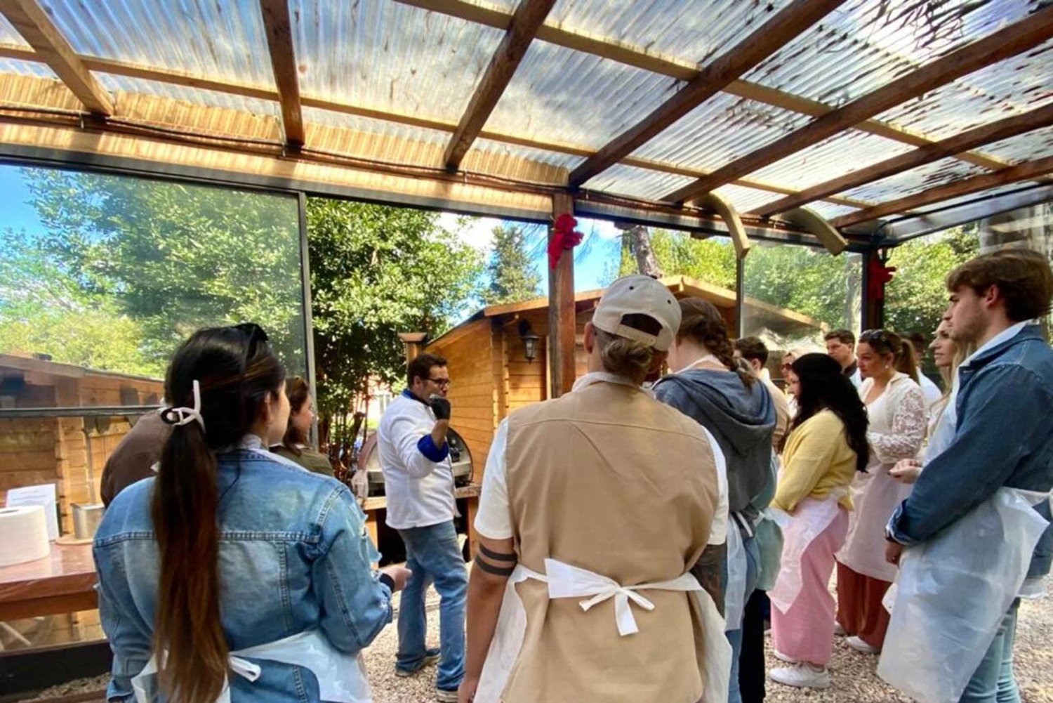 Começa a tua viagem encontrando o teu guia em Roma e desfruta de um confortável transfer para o nosso local de cozinha 'Wood Houses' - uma cozinha rural ao ar livre rodeada pela natureza, mesmo à saída do centro da cidade. Longe das multidões de turistas, este local cria o ambiente perfeito para a tua aventura culinária.