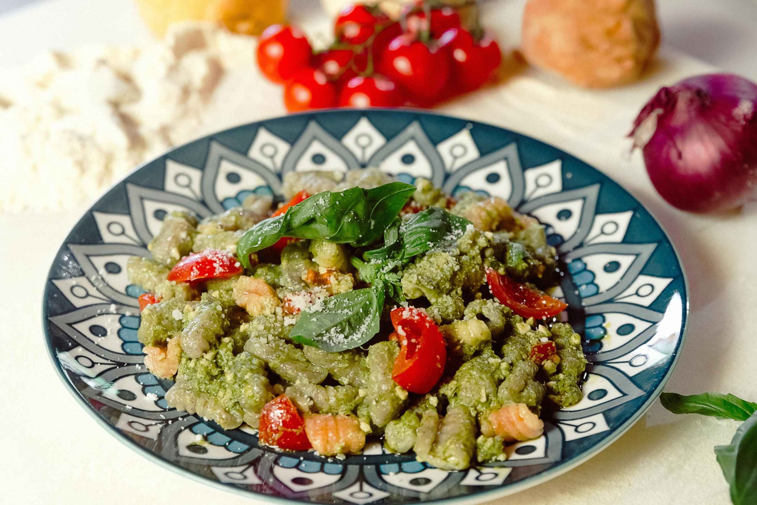Estás à procura da melhor aula de culinária em Roma? Junta-te a um workshop de culinária para toda a família, onde vais fazer uma autêntica pizza napolitana e massa fresca feita à mão a partir do zero, enquanto bebes vinho ilimitado num tranquilo jardim romano. Esta experiência gastronómica imersiva combina tradição, sabor e diversão da forma mais inesquecível.