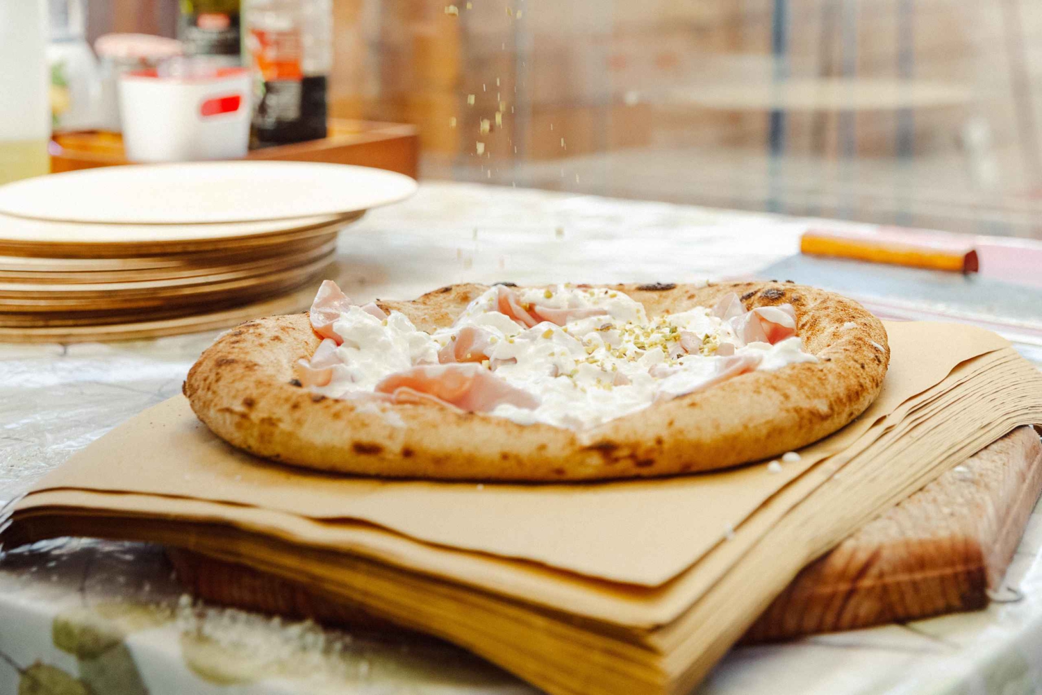 Serás recebido com um copo de vinho e serás apresentado ao teu chefe local, um Mastro Pizzaiolo e fabricante de massas licenciado, que te guiará em cada passo da experiência.