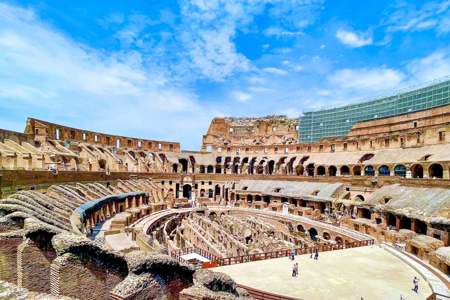 Explora o anfiteatro mais famoso do mundo neste tour guiado. Entra no Coliseu e conhece a sua incrível história. Com o teu guia, caminha pelo Monte Palatino e pelo Fórum Romano para ver os monumentos mais emblemáticos da Roma Antiga. Comece o seu passeio admirando o exterior do Coliseu. Ouça o seu guia de turismo explicar a história do monumento ao longo dos séculos. Entre no Anfiteatro, passando por uma verificação de segurança, e descubra as atividades espetaculares que aconteciam lá dentro. Depois, visite o primeiro andar e admire o interior. Pára um momento em frente ao imponente Arco de Constantino enquanto o teu guia descreve a sua história e as suas características mais significativas. Caminha pela antiga Via Sacra para chegar à entrada do Monte Palatino e do Fórum Romano. Após a verificação de segurança, admira o Arco de Tito de perto. Continua com o passeio pelo Monte Palatino, onde estão os vestígios do mais antigo povoamento da cidade. Visita algumas das residências imperiais mais importantes: o Estádio Palatino, a Domus Augustana e a Domus Flavia. Em seguida, desce até o vale que abriga o Fórum Romano. Ao longo da Via Sacra, descobre a magnificência da Basílica de Maxêncio, a porta de bronze do templo de Rômulo, a curiosa porta suspensa do templo de Antonino e Faustina, o templo e a casa das Vestais. Por fim, chegue à área central do Fórum Romano, que ao longo dos séculos se tornou o centro político, religioso, económico, jurídico e a praça da cidade antiga. Aqui, admire e aprenda sobre a Cúria, o Arco de Septímio Severo, o Tabulário, o templo de Saturno e muito mais.Includes