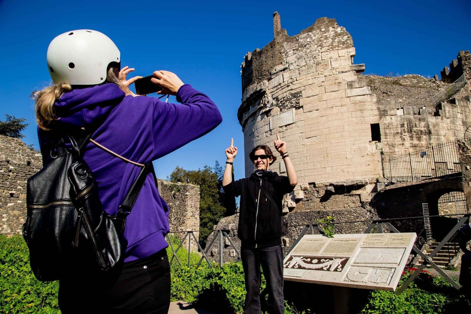 Вход в римскую каменоломню и катакомбы Качественный электровелосипед Шлем Держатель мобильного телефона Держатель руляи шлем Гид на итальянском и английском языках (французский/немецкий по запросу) Детские кресла (удерживают 25 кг) Трейлерный велосипед для детей 6-10 лет (140 см)Important Information