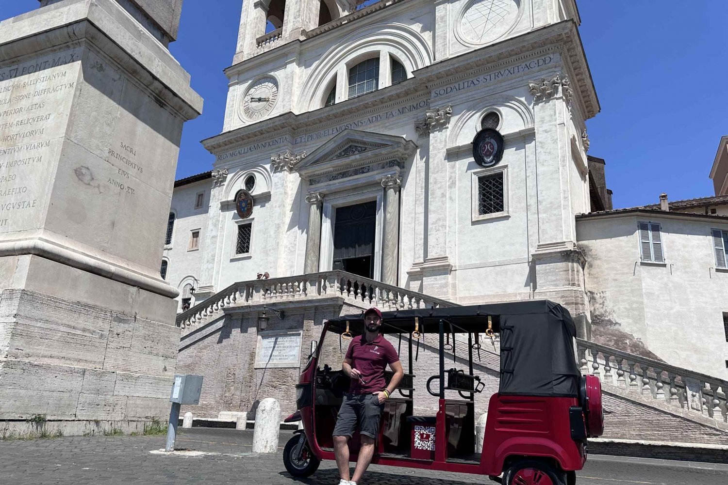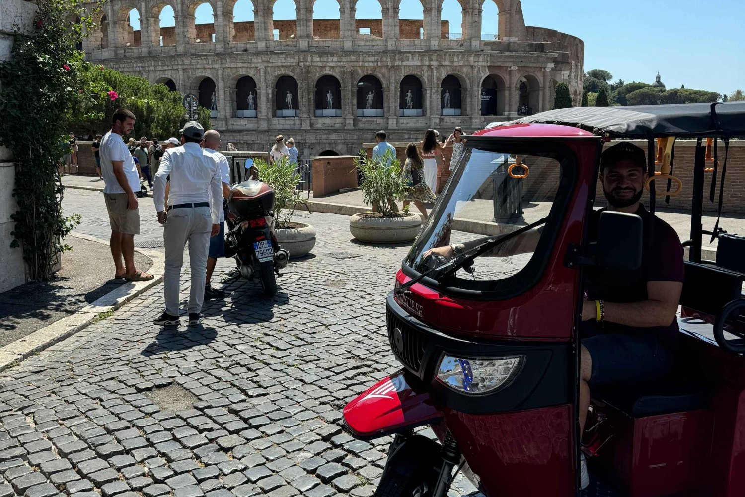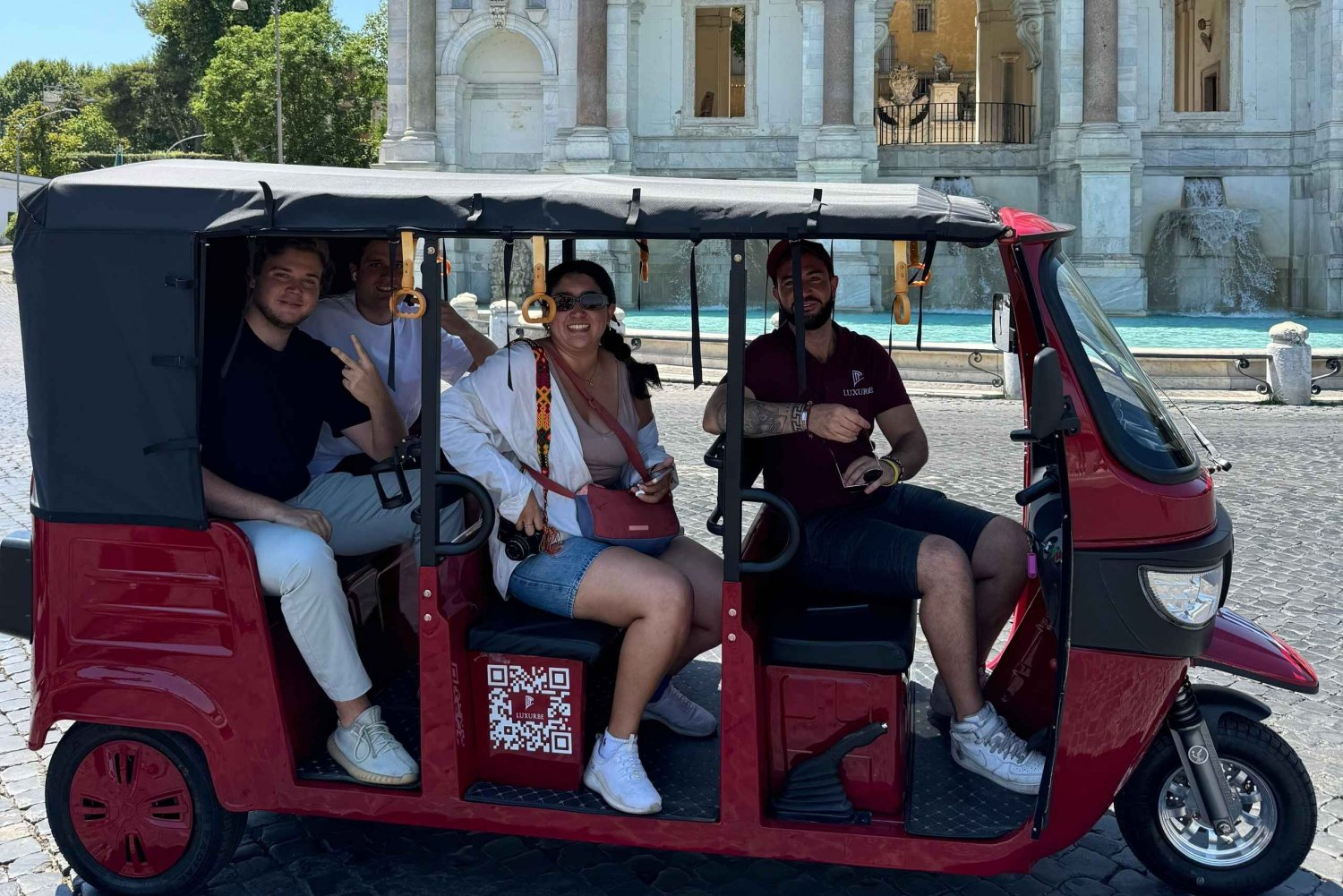 Откройте для себя чудеса Рима во время 3-часового тура на электромобиле E-Tuk, сочетающего в себе веселье, комфорт и экологичность. Скользите по историческим улицам города и познакомьтесь с его знаковыми достопримечательностями, скрытыми жемчужинами и узкими переулками, что идеально подходит для пар, семей и небольших групп. Наши экологичные E-Tuks - это экологичный и стильный способ увидеть город, обеспечивающий плавную и приятную поездку. Во главе со знающими гидами, увлеченными историей и культурой Рима, Вы узнаете увлекательные истории о Вечном городе во время посещения его достопримечательностей. Маршрут включает в себя такие захватывающие дух остановки, как площадь Венеции, Пантеон и Еврейское гетто. Восхититесь величием Ватикана, бросьте монетку в фонтан Треви и окунитесь в красоту Пьяцца Навона. Продолжите путь к культовому Колизею, исследуйте Императорские форы и посмотрите на древние гонки колесниц в Цирке Максимус. В завершение посетите потрясающий храм Сантиссима Тринита деи Монти. У каждой достопримечательности будет достаточно времени, чтобы сделать потрясающие фотографии и создать незабываемые воспоминания. Этот тур предлагает интимный и захватывающий способ познакомиться с Римом, сочетая современный комфорт с глубоким погружением в его богатую историю и очарование.Includes