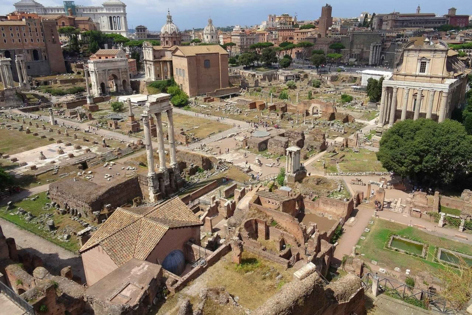 Följ med på vår 3-timmars guidade tur till Colosseum, Forum Romanum och Palatinen och fördjupa dig i hjärtat av det antika Rom. Starta din tur punktligt från vår organiserade mötesplats och börja med en detaljerad utforskning av Colosseums exteriör, där du får lära dig om dess anmärkningsvärda historia, från dess konstruktion till dess roll i det romerska samhället som en symbol för makt och underhållning. Gå sedan in i Forum Romanum, det livliga centrumet för det antika Roms offentliga liv. Din guide leder dig genom ruinerna och väcker till liv berättelserna om kejsare, senatorer och medborgare som formade historiens gång här. Upptäck templen, basilikan och monumenten som en gång stod i hjärtat av det romerska riket. Slutligen klättrar du upp på Palatinen, den legendariska födelseplatsen för Rom, där Romulus och Remus enligt sägnen uppfostrades av en varghona. Utforska ruinerna av kejsarpalats och njut av en fantastisk panoramautsikt över Forum Romanum och den moderna staden Rom. Denna tur erbjuder en omfattande och insiktsfull upplevelse av Roms mest ikoniska antika sevärdheter, perfekt för historieentusiaster och resenärer som vill fördjupa sig i stadens rika arv. Observera: Öppettider och sista inträde för Colosseum och Forum Romanum varierar beroende på säsong. Från 30 mars till 30 september stänger sevärdheterna kl. 19.15 (sista inträde kl. 18.15); från 1 oktober till 25 oktober stänger kl. 18.30 (sista inträde kl. 17.30); och från 26 oktober till 28 februari stänger sevärdheterna kl. 16.30 (sista inträde kl. 15.30).Includes